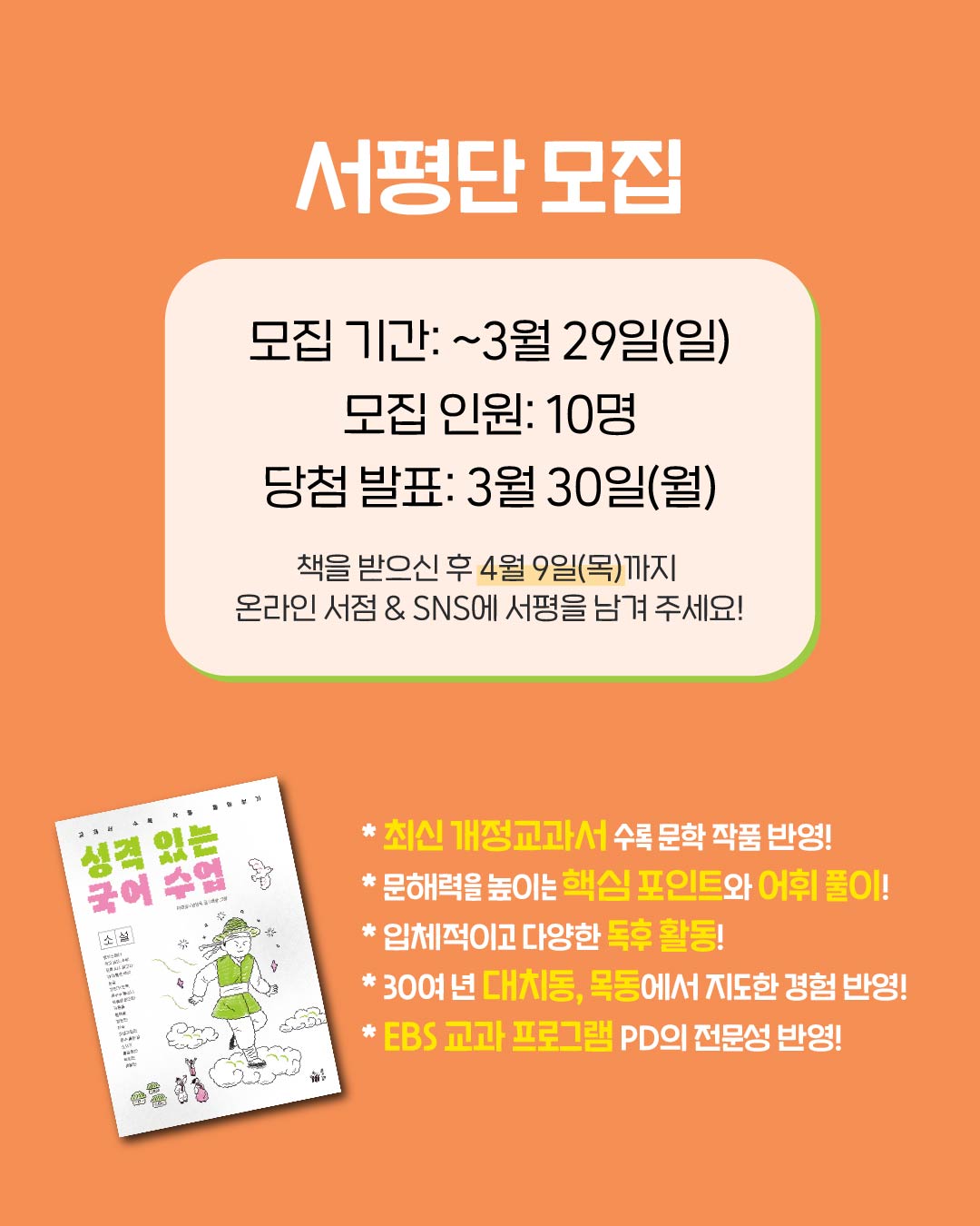 | 제목 | [서평단 모집] 《성격 있는 국어 수업 · 소설》 인스타그램 서평단을 모집합니다. | ||||