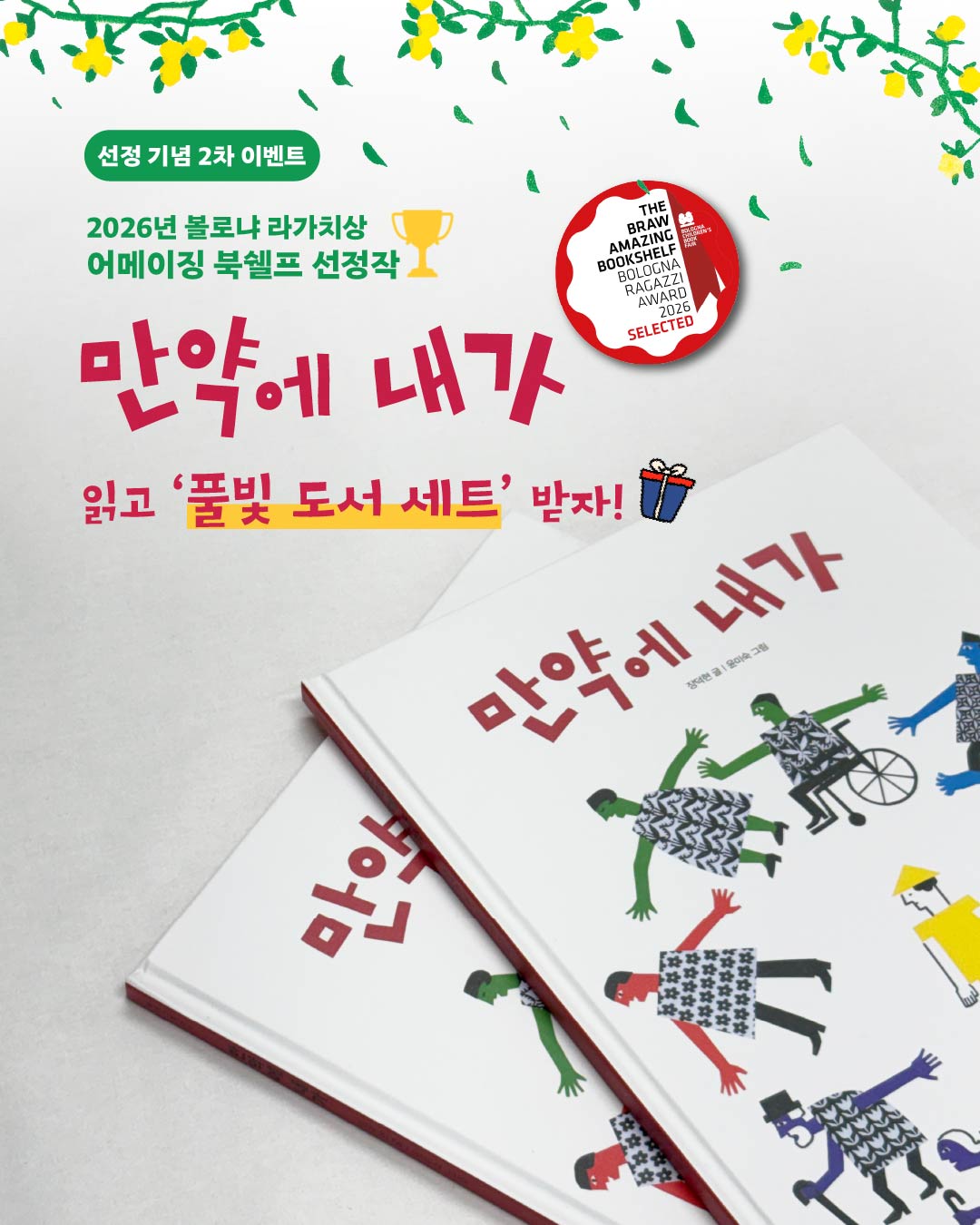 | 제목 | [이벤트 진행] 《만약에 내가》 2026 볼로냐 라가치상 어메이징 북쉘프 선정 기념 2차 이벤트 | ||||